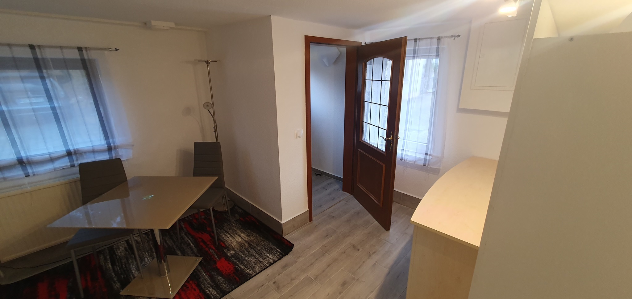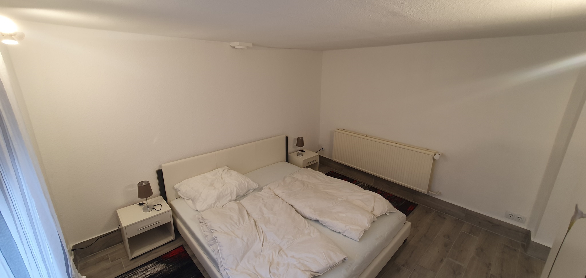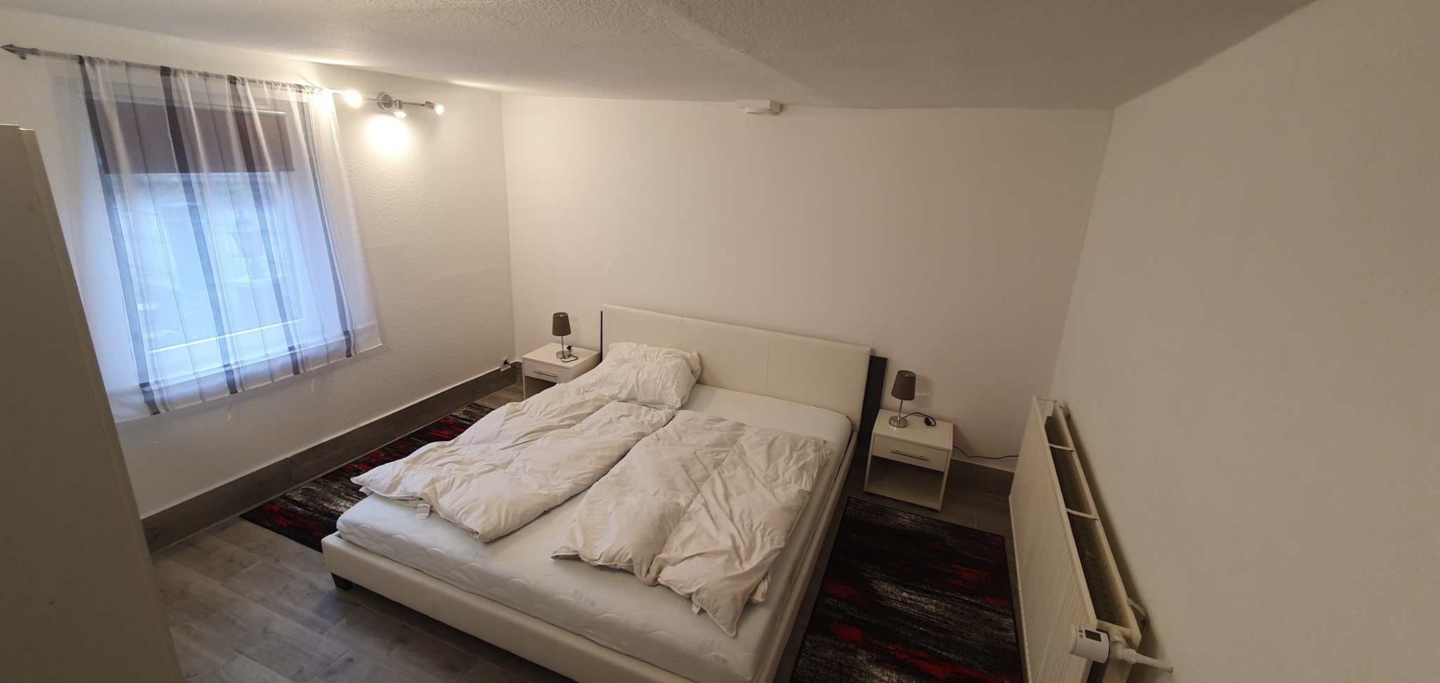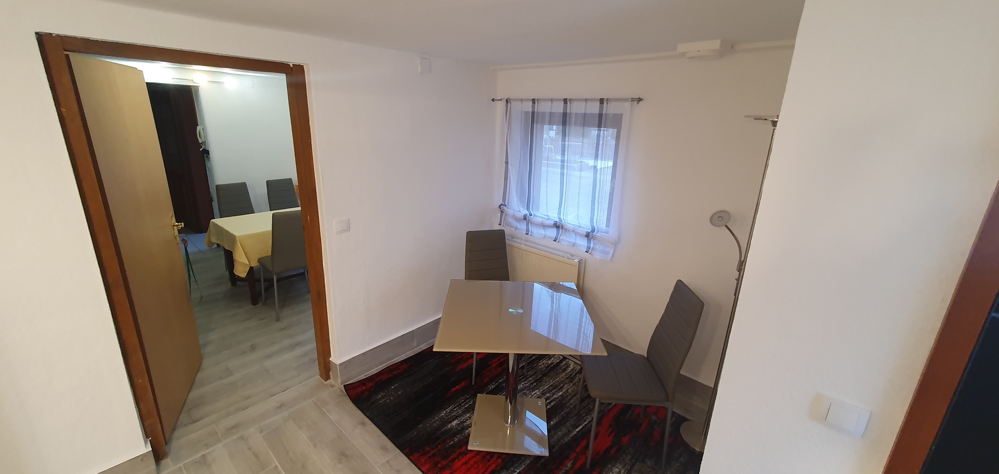 Das Zimmer 1 (ca 25m²) befindet sich im Erdgeschoss. Möbliert mit Doppelbett, Nachtschränkchen, geräumigem Kleiderschrank, Sideboard und Sitzmöglichkeiten. Als Besonderheit besitzt dieses Zimmer einen separaten Eingang vom Hof aus.