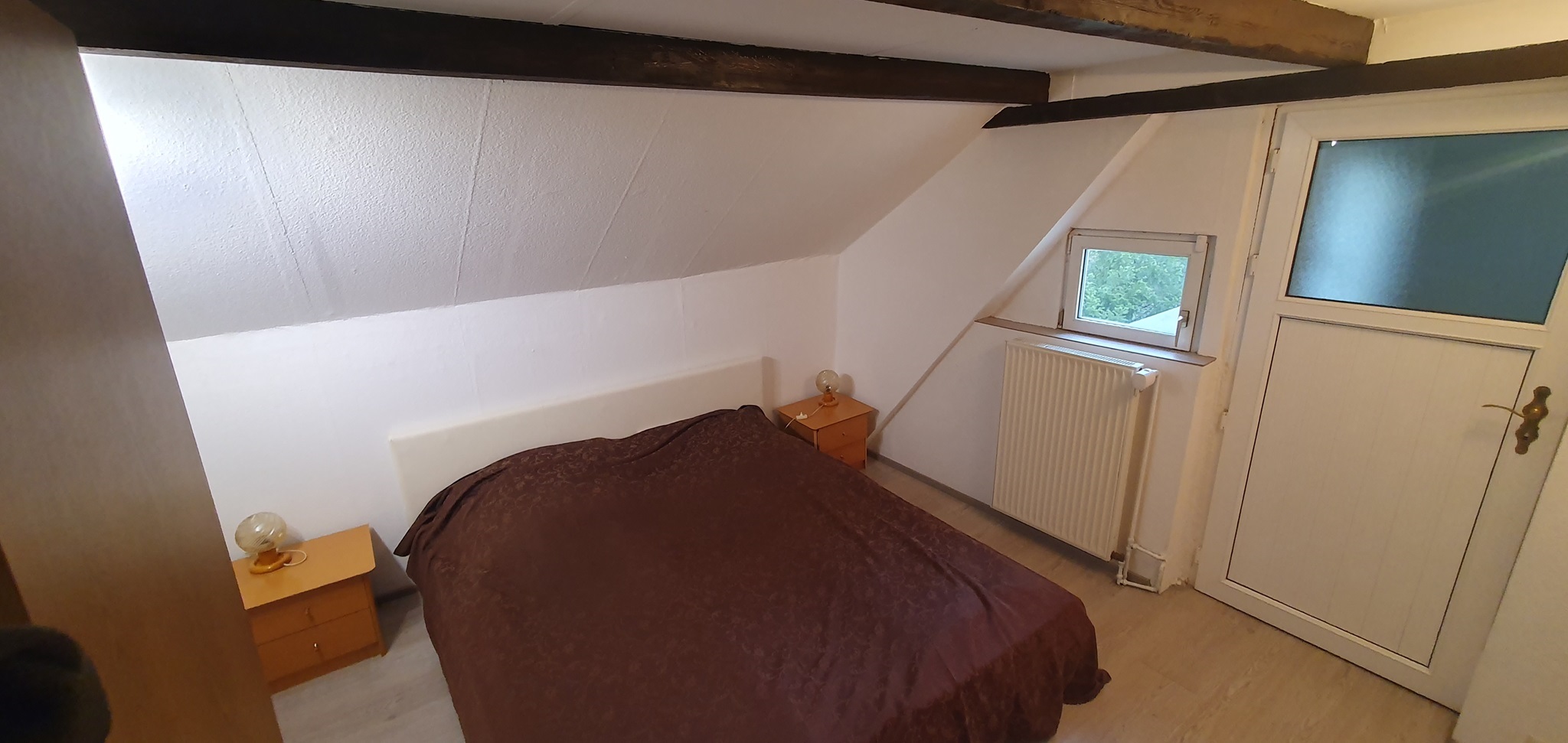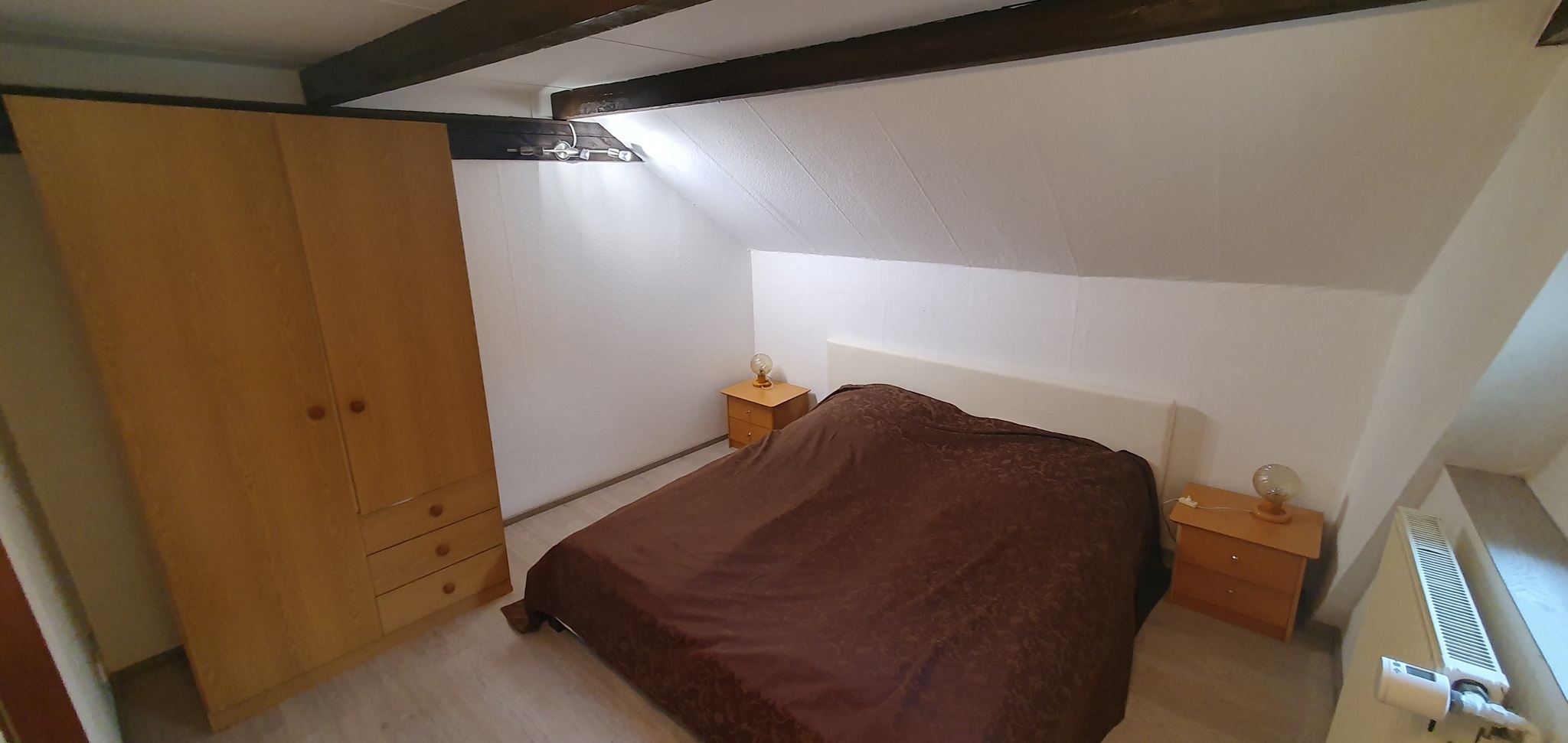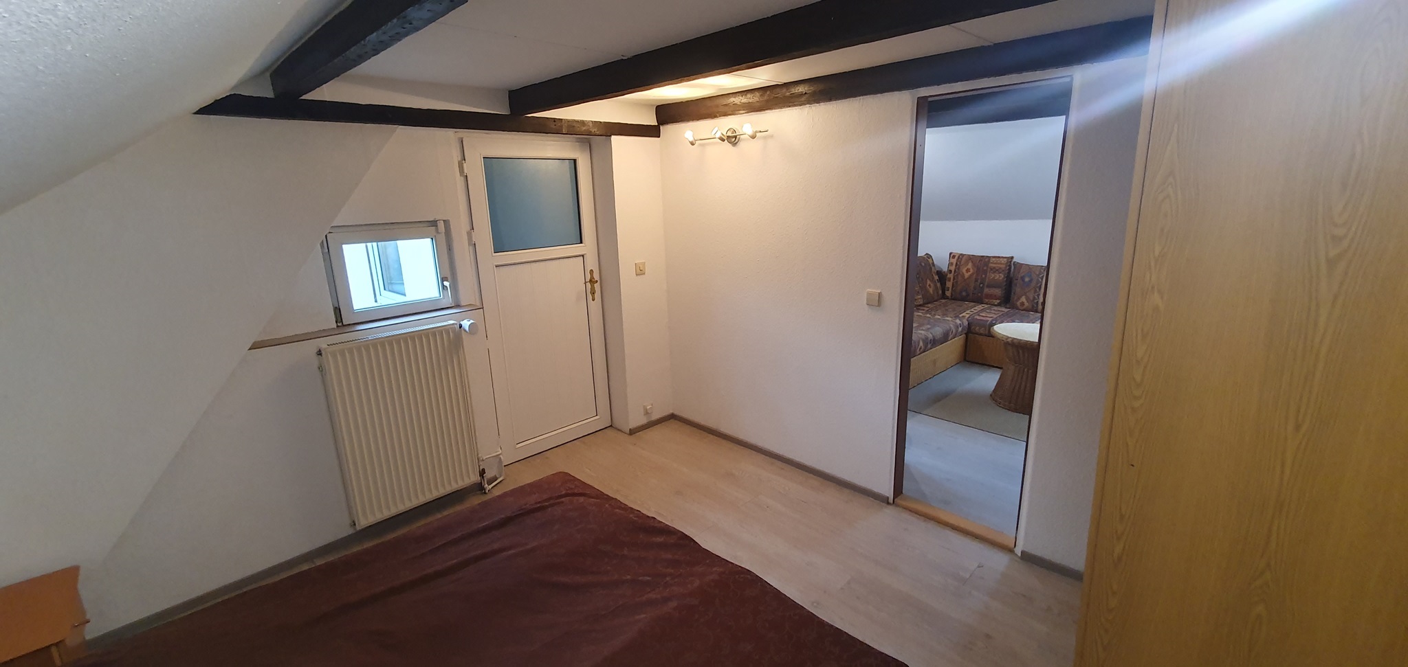 Dieser Privatbereich ist ca 22m² groß und unterteilt sich in Wohn- und Schlafbereich. Doppelbett, Kleiderschrank, Sideboard und eine gemütliche Korbcouch gehören zur Einrichtung. Als einziger der Privatbereiche verfügt dieser über ein kleines privates WC und einen Lagerraum im Spitzboden.